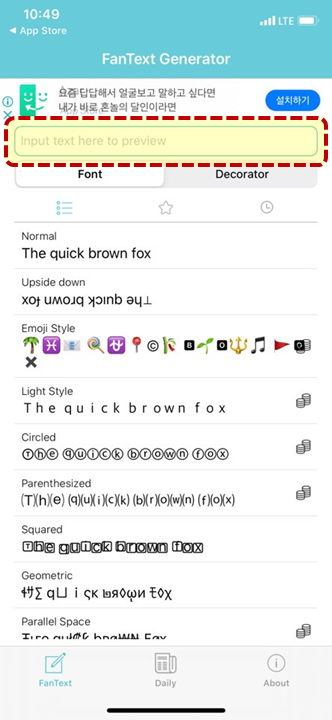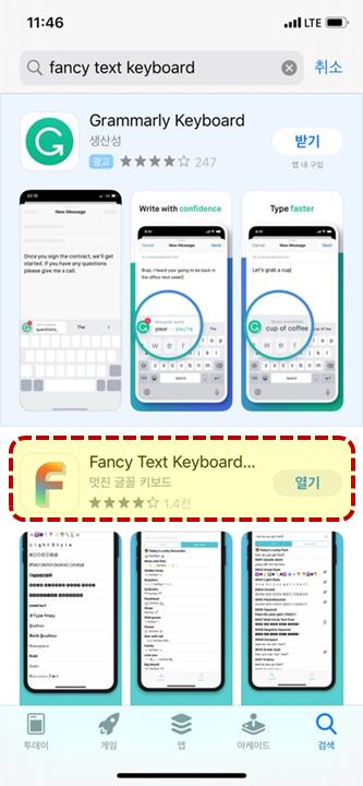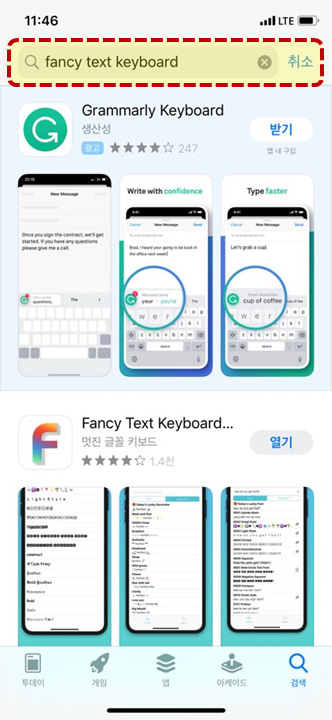 검색창에 위에 보이시는 것처럼 "fancy text keyboard"를 입력 후 검색해주세요