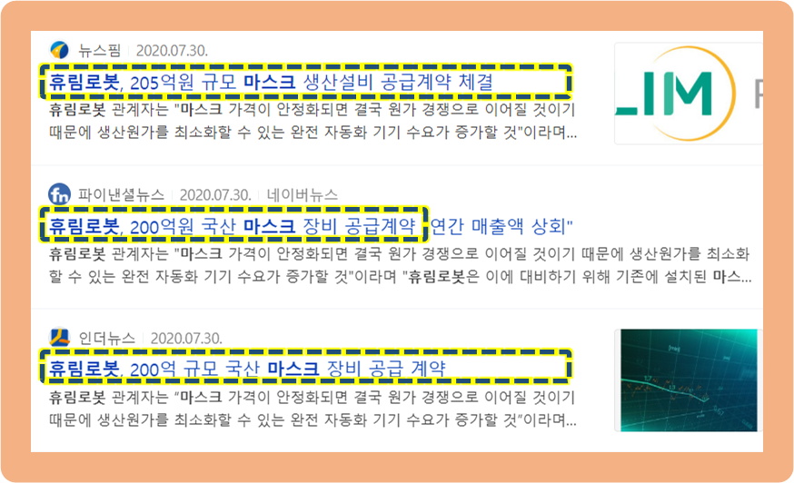이 마스크 공급 계약에 대해, 탑클래스는 휴림로봇이 연구해온 산업용 로봇 등과 협력해 자동화 설비 확장을 목표로 계약을 체결했다고 합니다.