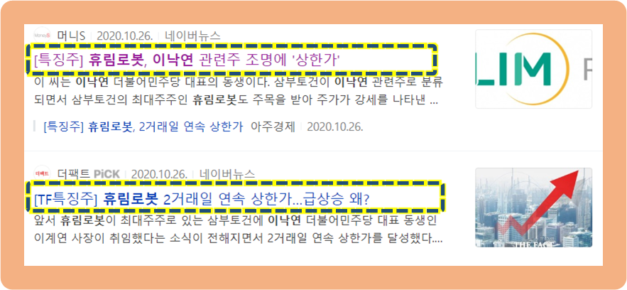 삼부토건이 민주당 이낙연 테마로 주가가 증가하면서, 휴림로봇도 함께 주목을 받고 주가가 급등했습니다.
