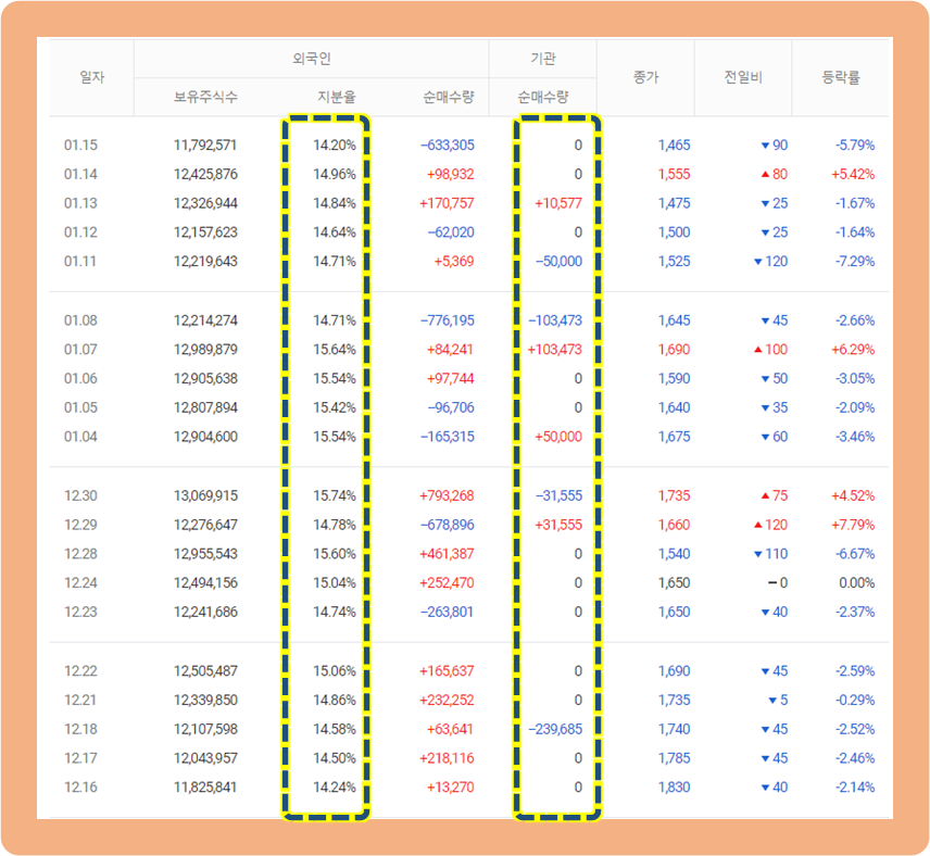 외국인, 기관의 주식 판매 동향에 대해 알아보겠습니다.