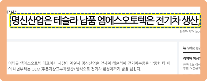 그리고 두 회사 모두 테슬라 관련 주식으로 얽혀 있는데, 그 이유는 엠에스오토텍이 자회사인 명신산업을 통해서 테슬라에게 자동차 부품을 공급하고 있기 때문입니다.