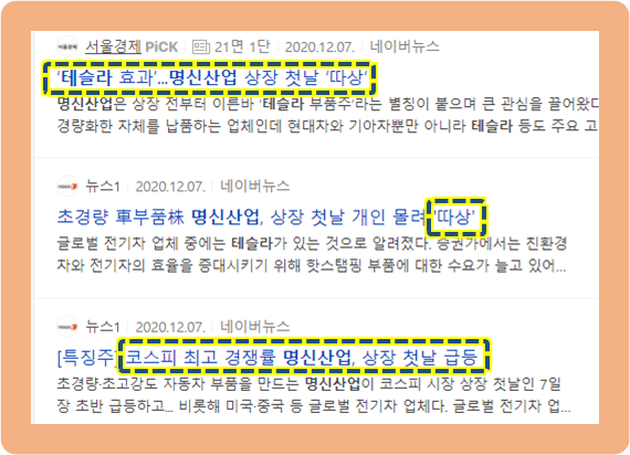 명신산업의 상장날 언론