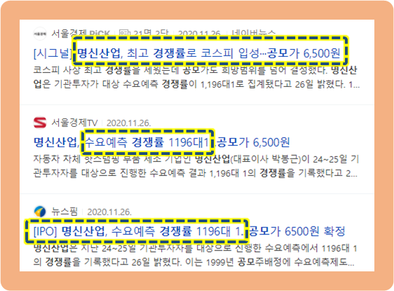 상장 전, 명신산업의 경쟁률 및 공모가