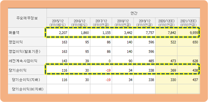 순이익도 2017년 0원에서 2019년에는 338억원으로 급증하였구요.