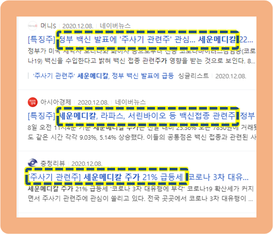 12월 8일에 한국 정부가 코로나 치료용 백신을 미국 제약사인 모더나, 화이자로부터 수입하겠다는 발표를 했을 때, 국내의 코로나 치료제 관련 주식들의 주가가 올랐었는데요.