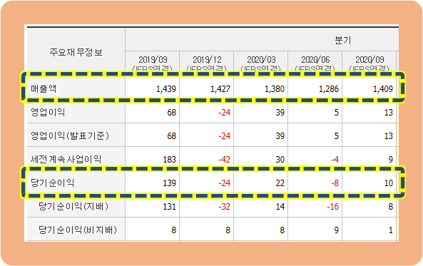 그런데 당기순이익은 적자와 흑자를 한 분기씩 번갈아가면서 기록하고 있는 모습이네요.
