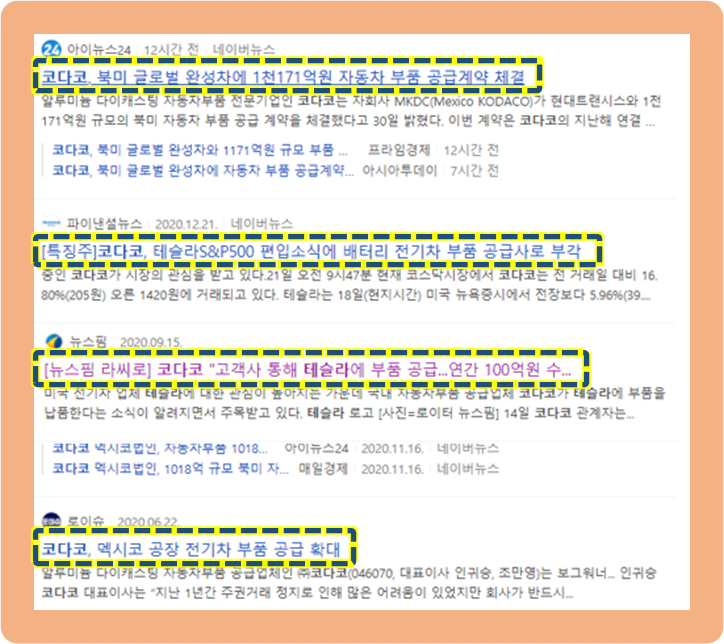 하지만 다른 테슬라 관련주와는 달리, 코다코 주가는 이상하게도 박스권에서만 움직이고 있는 모습입니다.