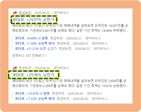 코다코 주식, 단기간 두 차례 상한가 기록