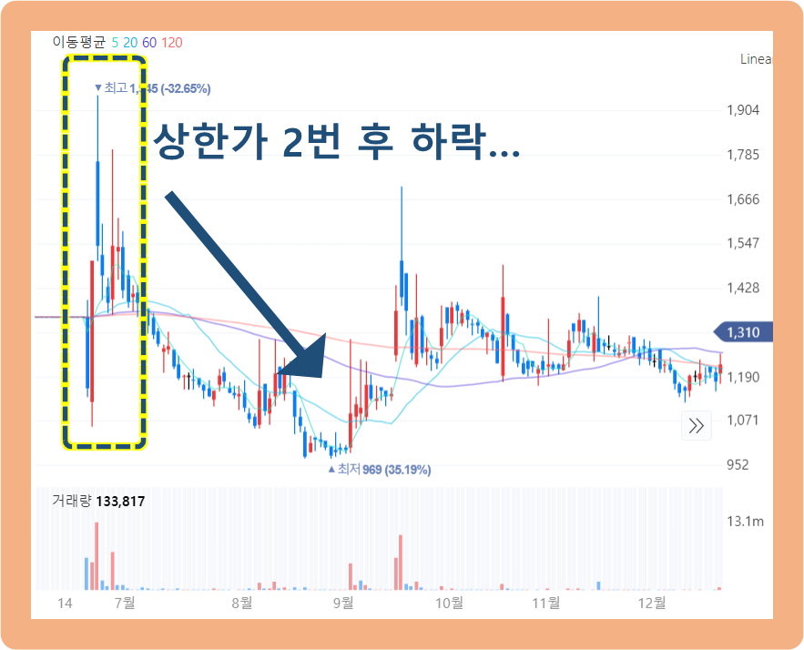 두 차례 상한가때문에, 재개 직후 매도해버린 투자자분들은 엄청 후회했었죠..