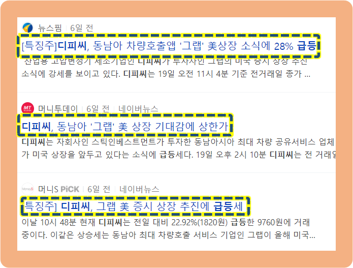 디시피, 관련주 그랩 수혜로 주식 상한가
