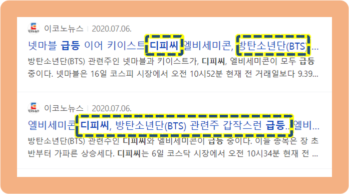 지난 해인 2020년 7월 6일 방탄소년단 관련주들이 일제히 급등세를 보였습니다.