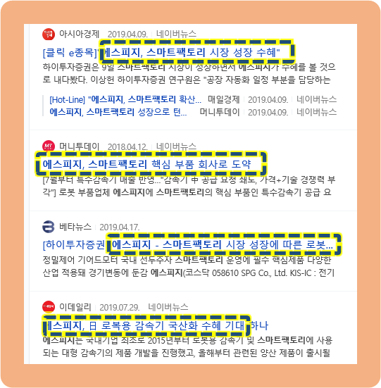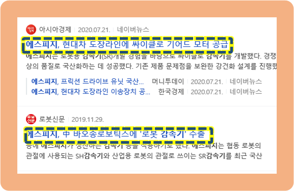 또한 에스피지는 로봇 관절 부분에 쓰이는 SH 감속기 및 산업용 로봇 관절에 쓰이는 SR 감속기를 국산화하는 데 성공하기도 했었구요.