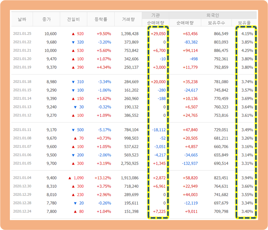 기관 및 외국인 주식 거래 동향