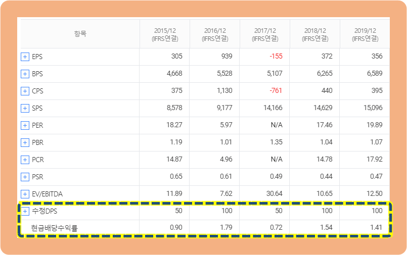 2015년, 2017년 배당금 : 50원
