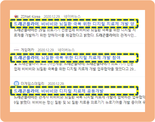 드래곤플라이는 약 20년 동안 쌓아온 게임 산업계 노하우를 통해, 뇌질환 환자 치료법을 개발하는 것이 목적이라고 합니다.