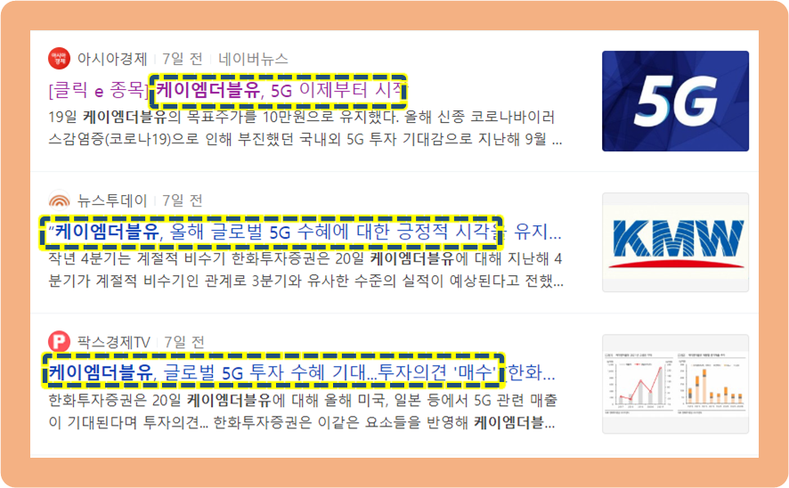 최근 국내 5g 네트워크 통신망이 본격적으로 구축되고 있는 현 시점에서, 케이엠더블유가 선도기업으로 5g 시장을 이끌어 나갈 수 있을 지 지켜보겠습니다.