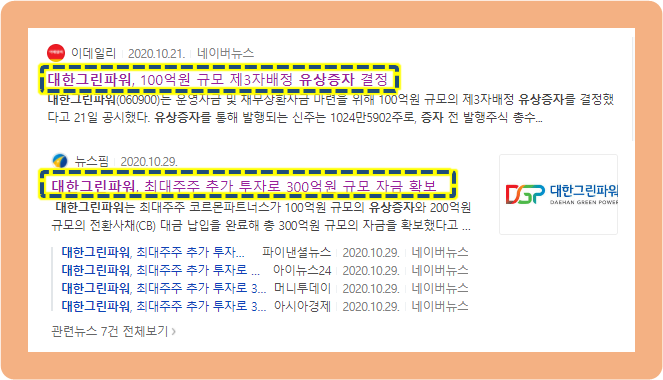 그리고 같은 달인 10월 29일 코르몬파트너스가 100억 원의 유상증자 및 200억 원의 전환사채 대금 납입을 완료하여, 대한그린파워는 총 300억원 규모의 자금을 확보하게 되었습니다.