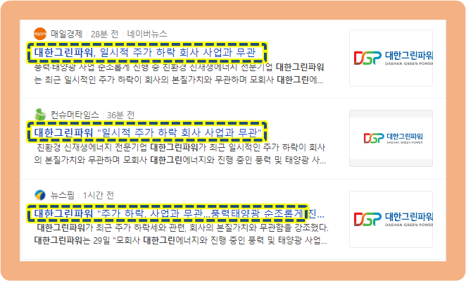 대한그린파워, 주가 하락 관련 의견 발표
