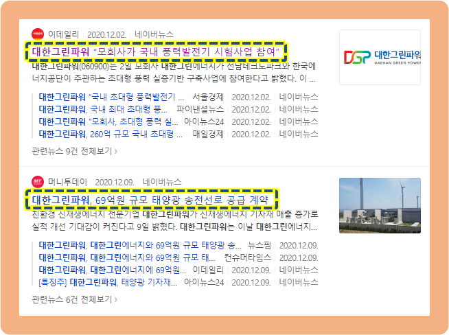 2020년 12월 9일에는 대한그린파워와 모회사 대한그린에너지가 69억원 규모의 태양광 송전선로를 공급하는 계약을 체결했는데요.