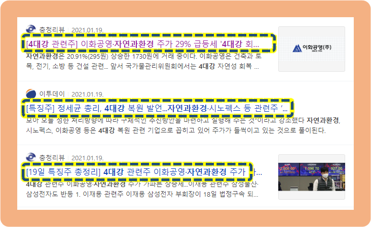 그리고 자연과환경은 4대강 관련 테마주 중 하나인데요.