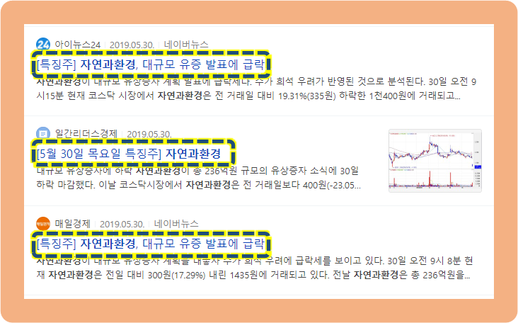 *참고로 말씀드리자면, 자연과환경은 2017년 5월경 4대강 테마주임을 부인하는 공시를 내면서 주가가 하락하기도 했었습니다.