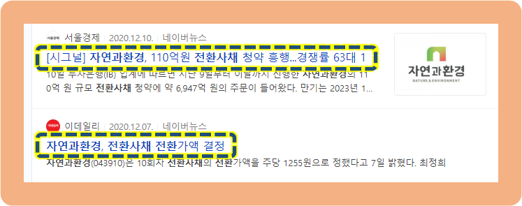 자연과환경, 전환사채 결정 소식