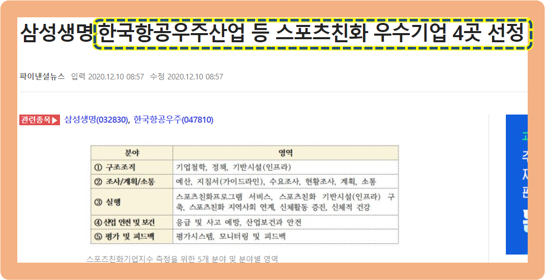 그리고 2020년 12월, 국민체육진흥공단과 문화체육관광부는 스포츠친화기업지수라는 지표를 바탕으로 우수기업 4곳을 선정했는데요.