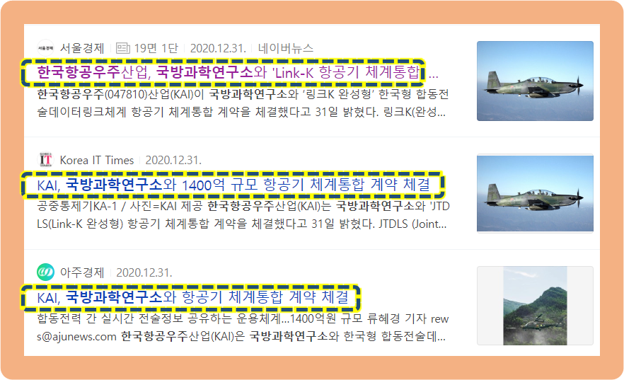 2020년 12월 31일, 국방과학연구소와 LinK-k 완성형 항공기 관련 체계 통합 계약을 체결한 소식이 있었습니다.