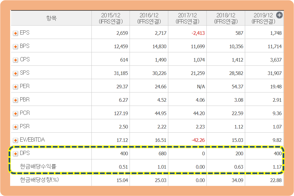 2017년은 당기순이익 적자로 인해 지급을 못해줬네요.