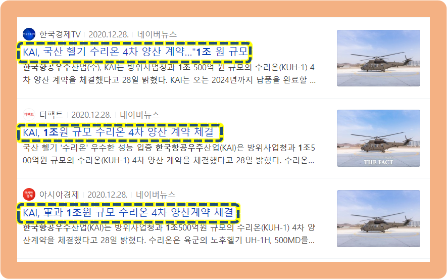 첫번째는, 한국항공우주가 강원지방조달청과의 모의비행훈련장치 도입사업을 체결했다는 것이구요.