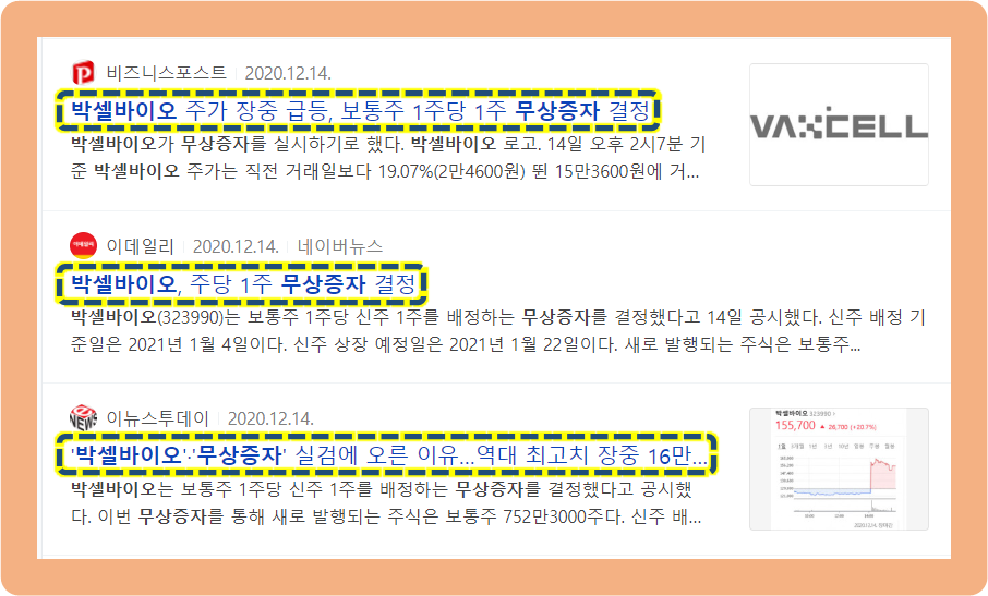 2020년 12월에는 박셀바이오의 무상증자 소식이 있었는데요.