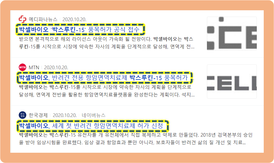 2020년 10월 19일에는 농림축산검역본부에 반려견 전용 항암면역치료제인 박스루킨-15의 품목허가를 위한 서류를 공식적으로 접수했다고 발표했습니다.