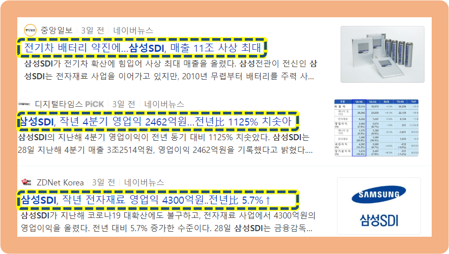 그리고 최근 삼성SDI가 전기차 확산에 힘입어 역대 사상 최대 매출을 올렸다는 기사로 난리였습니다.