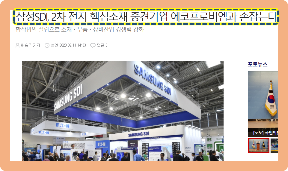 우선 지난 2020년 2월경 삼성SDI는 2차전지 핵심소재 중견기업인 에코프로비엠과 차세대 배터리 합작 법인을 설립하겠다는 시를 발표했는데요.