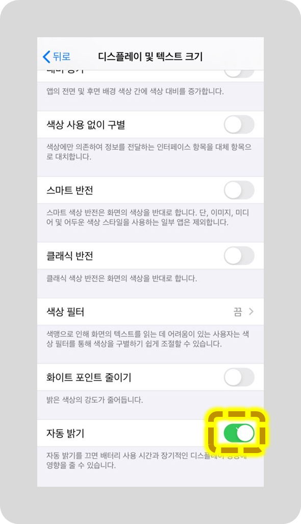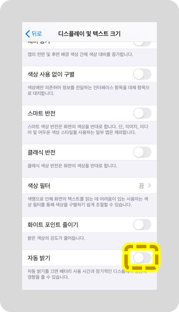 아이폰 자동밝기 설정 끄기
