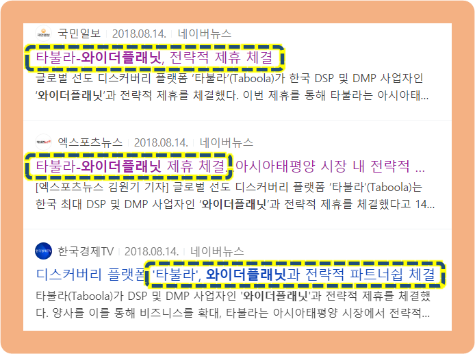 그리고 2018년 8월에는 글로벌 디스커버리 플랫폼인 타불라와 전략 제휴를 맺었는데요.