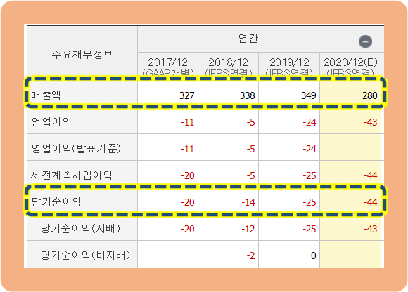 2020년도 기준으로 연간 당기순이익이 -44억원 적자를 기록하면서, 적자 폭이 더 확대되었구요.