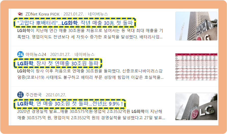 그리고 LG화학은 2020년도의 연간 매출액이 무려 약 30조원을 달성하면서 역대 최대 매출액을 기록했습니다.