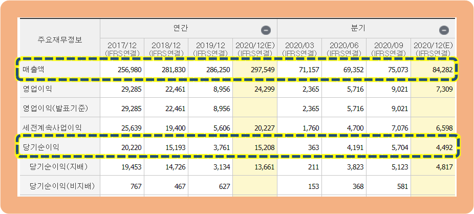그리고 연간 당기순이익은 2019년도에 3,000억원대였는데, 2020년도에 약 1조 5,000억원을 달성하면서 흑자 폭이 크게 증가되었습니다.