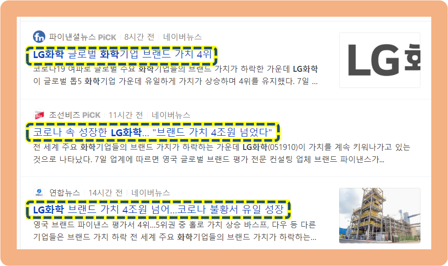 그 중 LG화학만이 유일하게 브랜드 가치를 상승시키고 있다고 합니다.
