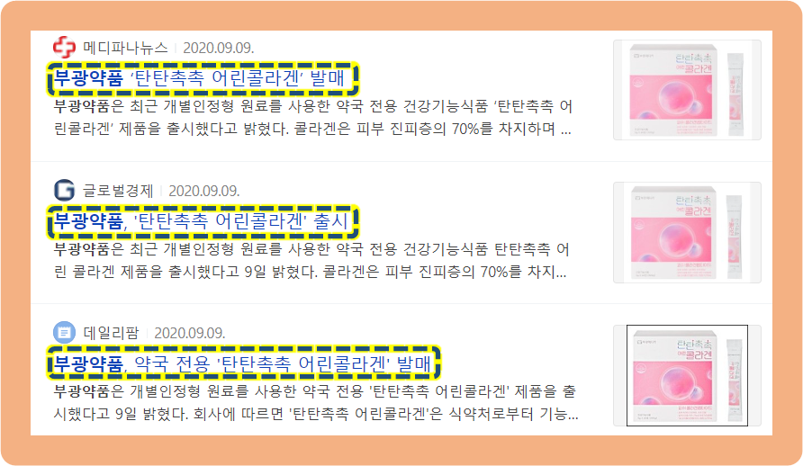 2020년 9월 9일, 부광약품은 약국 전용 건강기능식품인 탄탄 촉촉 어린 콜라겐을 출시했습니다.