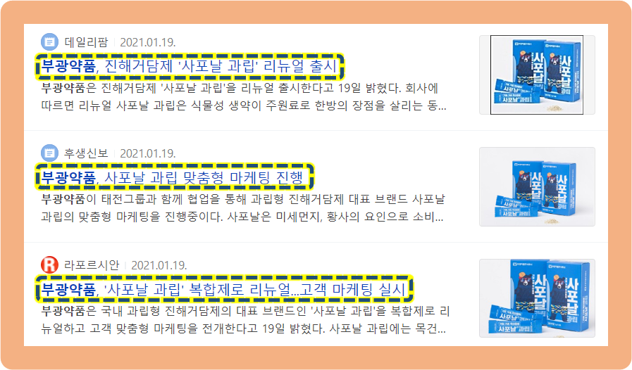 2021년 1월 19일에는 부광약품이 국내의 과립형 진해거담제의 대표 브랜드인 사포날 과립을 리뉴얼 발표를 했는데요.