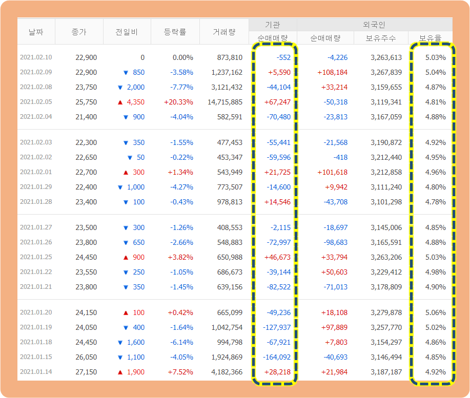 기관투자자들은 매수보다 매도세가 훨씬 강합니다.