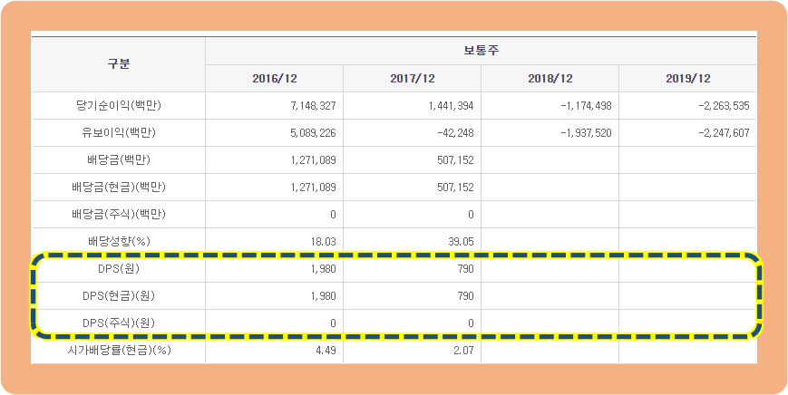 2016년 : 1,980원, 2017년 : 790원을 지급해줬었는데요.