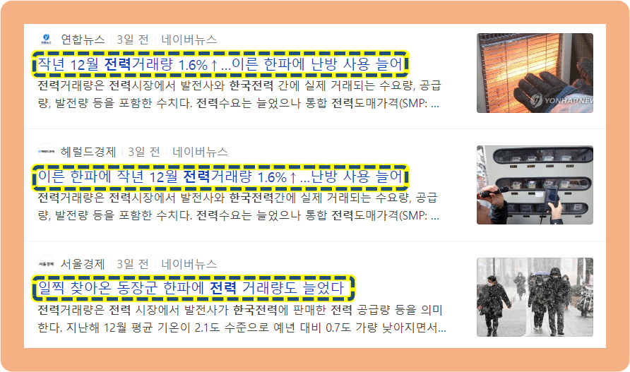 일찍 찾아온 한파로 인해 난방기기 사용 등이 늘어나면서 전력 거래량이 소폭 증가했다고 합니다.