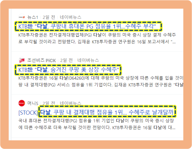 또한 쿠팡의 미국 뉴욕 증시 상장을 앞두고 있는 상황도 다날이 수혜를 입었는데요.