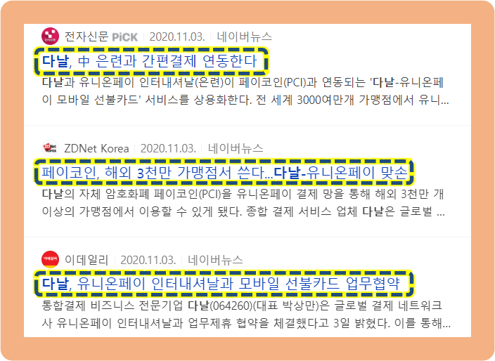 다날, 그리고 자회사가 발행한 페이코인 모두 윈윈하고 있는 상황입니다.