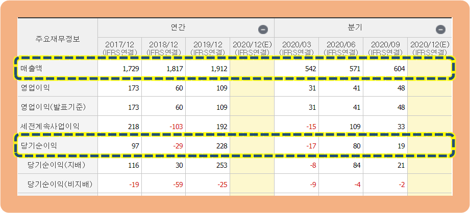 그리고 2020년 1~3분기까지의 순이익 총합은 82억원으로, 2020년 4분기 실적이 나오면 2020년 연간 순이익은 흑자를 기록할 것으로 예상됩니다.