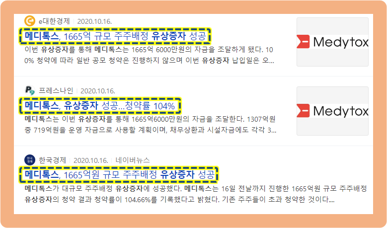하지만 2020년 10월 21일 메디톡스는 투자자 보호를 위해 유상증자와 무상증자의 발행을 취소한다고 공시하였습니다.