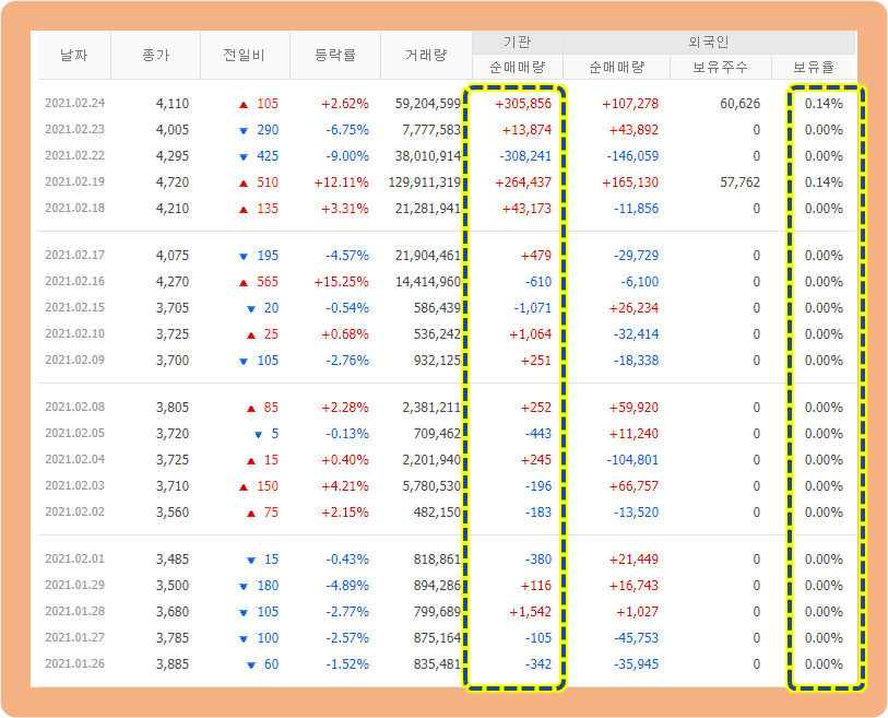 최근 며칠동안 기관투자자의 매수세가 상당히 강했습니다.